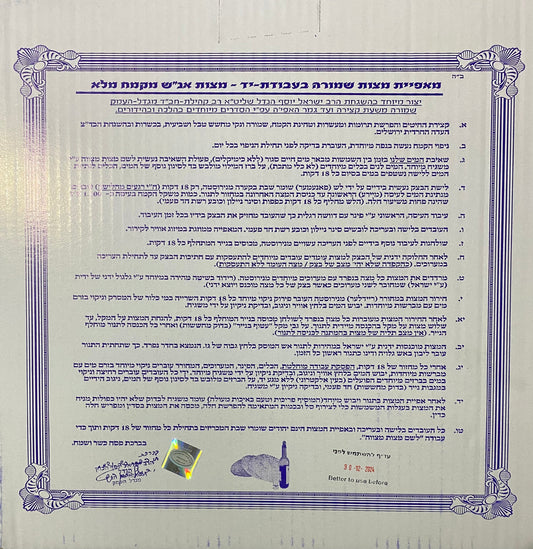 Matza Anash (Chabad) Hand Whole Wheat (3-matzot) (1kg (2.2 lb))